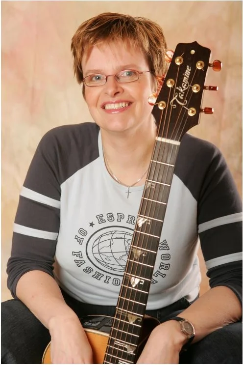 Twelve years ago, Janet did not yet know she had MS, the diagnosis had not yet been made. At that time, she could still do almost everything, play the guitar and the piano and sing. She wrote several songs for a cd, then, for which this photo was taken. On her own channel on YouTube, she has put a number of songs, among which the sensitive ‘Loslaten’ [‘Letting go’] from 2010, that became an ever greater theme in her life as her illness progressed.